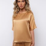 Elegante nella sua semplicità, la T-Shirt Solo Seta Caramel è un capo classico e confortevole: incredibilmente soffice al contatto con la pelle, presenta una vestibilità morbida e delle maniche a kimono. Ideale per dormire avvolte nel lusso, può essere indossata come top durante il giorno.